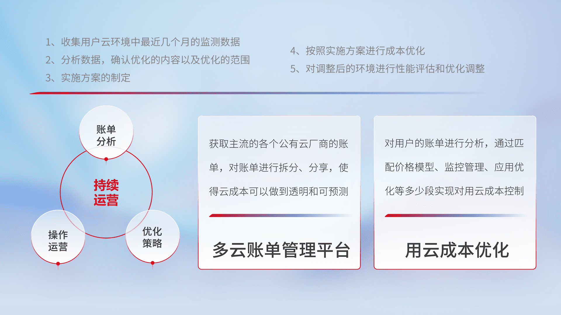 运用智能化工具分析云资源,,,提供日常费用可视化工具,,,,自动账单拆分,,,成本优化云上费用,,降本增效。。
